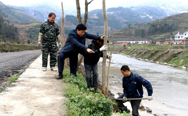 3月14日,竹坪乡组织马鞍山、陈家河村村民在陈家河流域无性系茶叶观光园河道、观光大道边栽植西湖柳、香樟、桂花、樱花等绿化苗木。据了解,为打造"茶在树中馨芬芳,人在景中挣大钱"茶叶生态观光园,该乡组织技术员科学设计,组织村民进行河道、观光大道绿化,栽植各类绿化苗木3000株。(程平 蔡远笈)